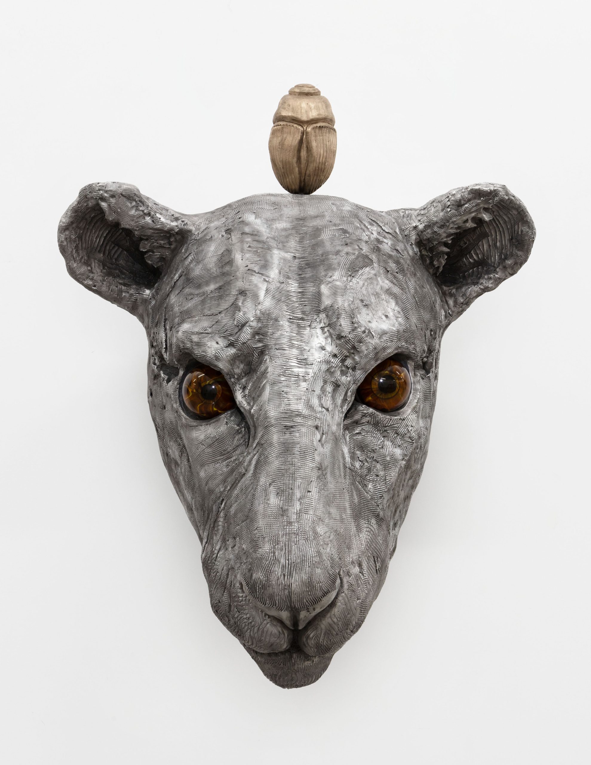 Patinated aluminum, bronze and glass